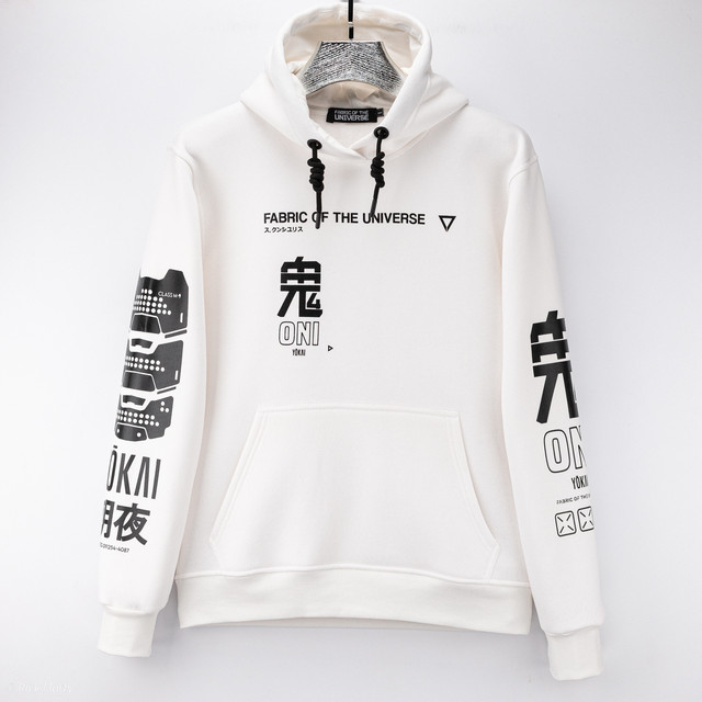 Худі Fabric of the Universe біла тепла м’яка якісна на флісі з принтом ONI YOKAI