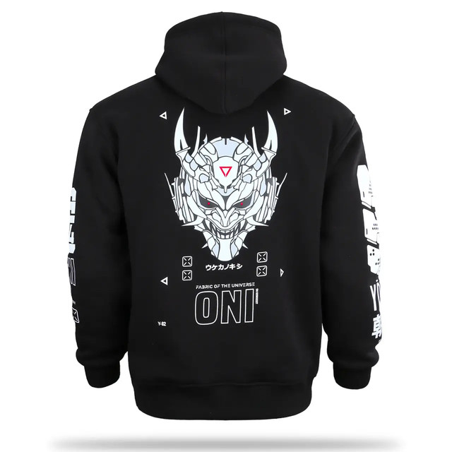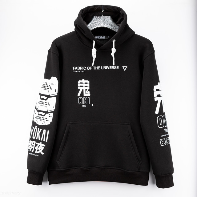 Худі Fabric of the Universe чорна тепла м’яка якісна на флісі з принтом ONI YOKAI