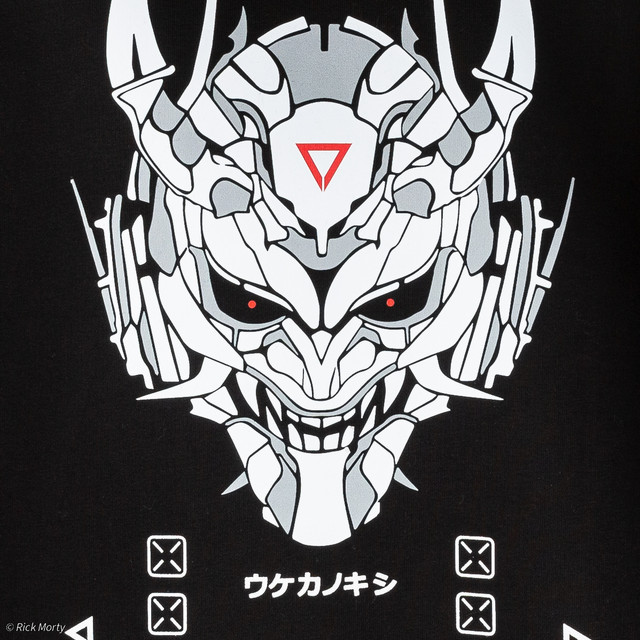 На спині розміщений великий графічний принт із зображенням маски демона Оні — символом сили та духу самурая. Рукави та передня частина прикрашені японськими ієрогліфами та фірмовими написами Fabric of the Universe.
