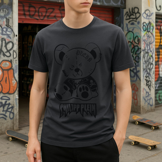 Футболка чоловіча Philipp Plein темно-сіра з принтом ведмедика