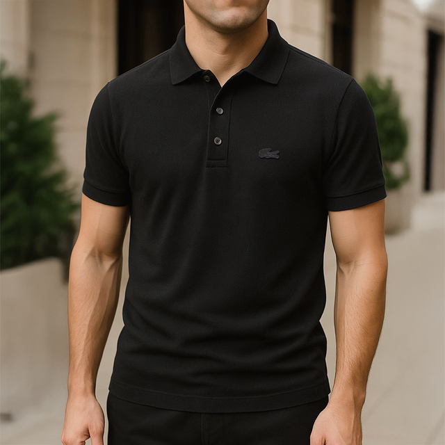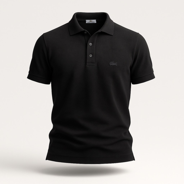Чоловіча футболка поло Lacoste — ідеальний вибір для тих, хто цінує стиль, комфорт і якість. Модель виконана з преміальної бавовняної тканини лакоста, яка має характерну фактуру "сотами", забезпечує вентиляцію та приємна на дотик. Вишитий патч в тон основної тканини на грудях додає елегантності та підкреслює брендованість. Класичний фасон, комір з планкою на ґудзиках, короткий рукав і базовий чорний колір — універсальне рішення на кожен день або для ділового casual стилю.