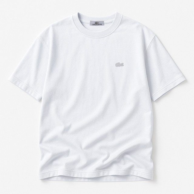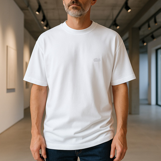 Чоловіча футболка Lacoste біла з фірмовим патчем, вільний крій, оверсайз