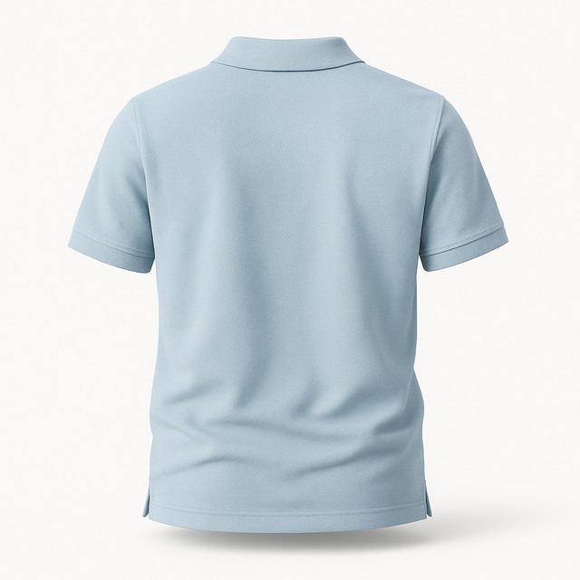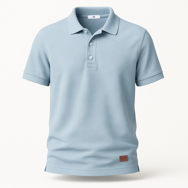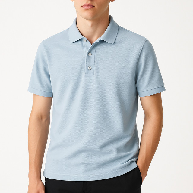 Базова чоловіча футболка поло виготовлена з трикотажу лакоста преміум-якості щільністю 180 г/м². Склад тканини — 95% бавовна та 5% еластан, що гарантує комфорт, довговічність і м’якість у носінні. Вільна посадка забезпечує свободу рухів, а світлий голубий відтінок додає свіжості й легко поєднується з джинсами або шортами. Класичний комір із ґудзиками — універсальний вибір для весни та літа, як для офісу, так і для прогулянок.