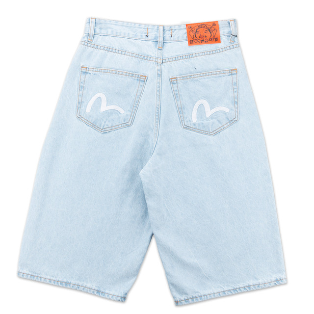 Чоловічі широкі шорти джинсові EVISU світло-блакитні, оверсайз, у стилі Y2K