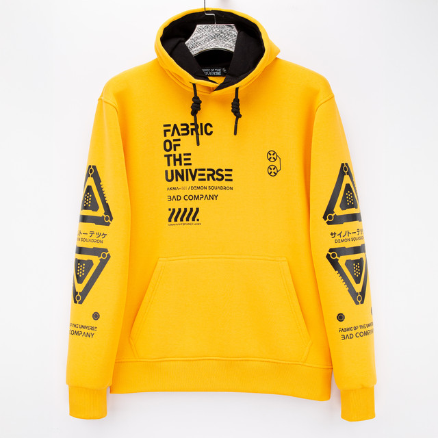 Жовта худі Fabric of the Universe AKMA-061 — це яскравий елемент гардероба у футуристичному стилі, створений для тих, хто цінує унікальний дизайн і комфорт.